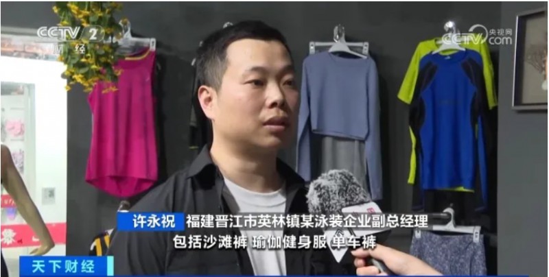福建晉江市英林鎮(zhèn)某泳裝企業(yè)副總經(jīng)理許永祝:包括沙灘褲、瑜伽健身服、單車(chē)褲等彈力運(yùn)動(dòng)的系列,我們?cè)谌奉?lèi)開(kāi)發(fā)、研發(fā),已經(jīng)在生產(chǎn)了。