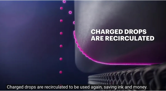 連續(xù)噴墨(CIJ)式打印頭在打印頭中連續(xù)循環(huán)墨水。當(dāng)墨水離開(kāi)噴嘴時(shí),墨水流被分開(kāi)為用于打印的墨滴和用于再循環(huán)的墨滴。