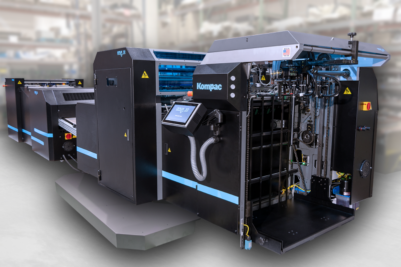 然而,收紙方式仍然是傳統(tǒng)的。色彩管理已針對品牌色彩復制進行了優(yōu)化。雖然這是一臺CMYK印刷機,但富士膠片可以使用比膠印更大的色域。今年,富士膠片終于在德魯巴印刷展上推出了一款與印刷機聯(lián)機的Kompac涂布機,用于水性和UV上光。
