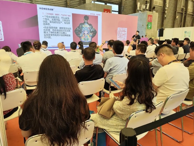 此次展會鴻盛數(shù)碼以其前沿的水性環(huán)保數(shù)碼印花工藝,成為了展會的焦點之一。尤其是在展會論壇上的精彩演講,更是讓鴻盛數(shù)碼贏得了業(yè)界的廣泛關(guān)注和贊譽。鴻盛數(shù)碼的李總,在論壇上詳細闡述了水性乳膠打印技術(shù)在皮革行業(yè)的應(yīng)用及其優(yōu)勢。演講中,他首先介紹了這項技術(shù)的基本原理和操作流程,強調(diào)了其環(huán)保、高效的特點。