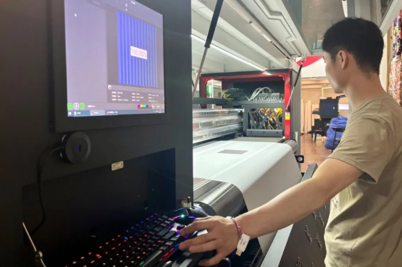 與此同時,數碼印花技術在紡織產業(yè)中展現出巨大潛力,在塑造行業(yè)發(fā)展新動能新優(yōu)勢方面表現突出。藍成榮介紹道,在柯橋,已有將近50%的印花企業(yè)使用數碼印花技術。飛達紡織目前擁有先進的多套色印紙機、2條轉移印花流水線,并投產24頭超高速數碼印花機。在他看來,大批量印花時代正逐漸向小批量、個性化、綠色環(huán)保時代不斷轉型,數碼印花相較于轉移印花更為便捷高效,是對轉移印花技術的良好補充,也是印花企業(yè)順應綠色可持續(xù)的時代潮流的必由之路。