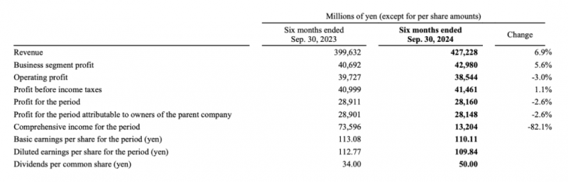 其中,打印解決方案部門上半年收入2663.18億日元,約合人民幣125.11億元,同比上漲約7.03%。報(bào)告顯示,預(yù)計(jì)公司2025年3月期的財(cái)年內(nèi)銷售收入為8659億日元,約合人民幣406.64億元,預(yù)計(jì)同比增長5.15;預(yù)計(jì)歸母凈利潤570億日元,約合人民幣26.78億元,預(yù)計(jì)同比增長80.1%。