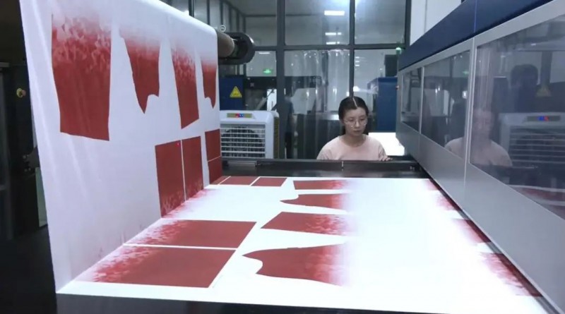 浙江省紹興市柯橋區(qū)乾雍紡織有限公司智能車間,伴隨著“噠噠”聲,面料從數(shù)碼印花機(jī)“跳”出來(lái)。陽(yáng)光照射下,面料色彩飽和豐富,分成了深深淺淺十幾層。“這是我們的獨(dú)家產(chǎn)品,曾作為巴黎奧運(yùn)會(huì)有關(guān)國(guó)家代表團(tuán)運(yùn)動(dòng)服的面料。”總經(jīng)理蕭興水難掩驕傲。