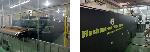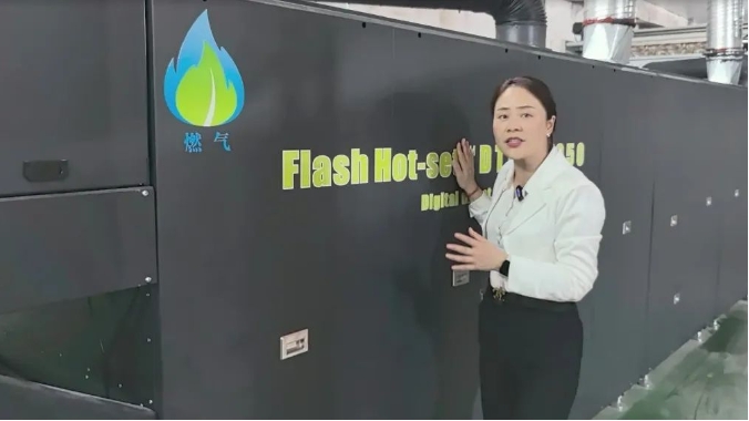 客戶選定了匹配6米燃?xì)夤躺娓蓹C(jī)方案,整套設(shè)備于2024年11月18日調(diào)試并投產(chǎn),當(dāng)月已經(jīng)完成5萬米產(chǎn)量??蛻羰褂眠^程中驗證打印機(jī)與烘干機(jī)在線固色工藝完美運行,水洗牢度達(dá)到3級。
