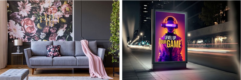 佳能彩浪夢系列UVgel打印的產(chǎn)品在壁紙裝飾、戶外廣告、標(biāo)志標(biāo)識、地貼等應(yīng)用領(lǐng)域大放異彩