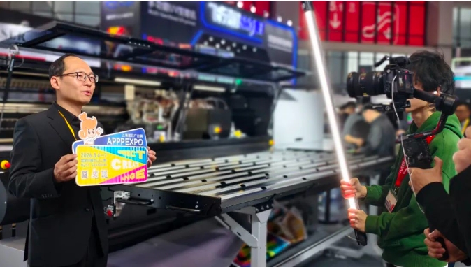 展會第二天,Durst P5 350 HS依然是全場焦點。這款超高速平卷兩用混合打印機以其卓越的性能和創(chuàng)新設計,吸引了眾多專業(yè)觀眾和行業(yè)精英的目光。得世中國資深工程師孫曉棟先生在接受主辦方采訪時詳細介紹了P5 350 HS的特點和優(yōu)勢,包括其最高可達708平米/小時的產能、精準的材料探測功能、多卷多軌打印能力以及人性化設計。這些特性不僅展示了Durst在技術上的領先地位,也滿足了高端印刷市場對品質和效率的嚴苛要求。