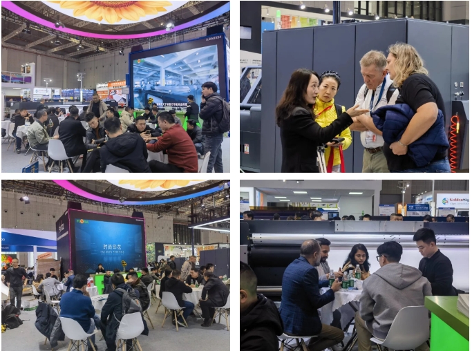 展會現(xiàn)場,潤天智通過動態(tài)工藝演示實地展現(xiàn)從數(shù)字印刷到智能工廠的系統(tǒng)化解決方案,其廣告噴繪印刷設(shè)備的肌理畫堆疊、平板打印的視覺定位系統(tǒng)等創(chuàng)新成果,引發(fā)專業(yè)觀眾高度關(guān)注,咨詢洽談區(qū)熱度持續(xù)攀升。