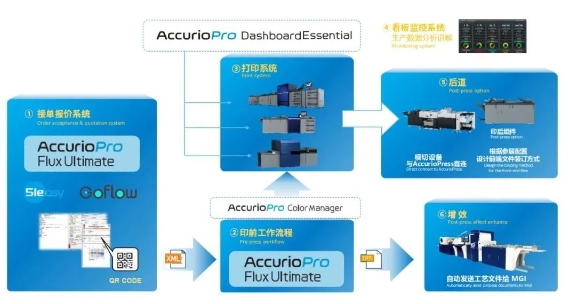 同時(shí),柯尼卡美能達(dá)與好利用首次強(qiáng)強(qiáng)聯(lián)合,首次推出創(chuàng)新的連線解決方案,完美實(shí)現(xiàn)按需生產(chǎn)工作流程。該方案通過(guò)數(shù)字化整合印刷和印后環(huán)節(jié),構(gòu)建了完整的生產(chǎn)體系:從AccurioPro Flux Ultimate接單報(bào)價(jià)系統(tǒng)開始,經(jīng)AccurioPro Flux Ultimate印前工作流程,到打印系統(tǒng),配合生產(chǎn)數(shù)據(jù)分析看板監(jiān)控系統(tǒng),最終完成增效處理,形成端到端的智能化生產(chǎn)閉環(huán)。“這也是基于我們對(duì)中國(guó)印刷企業(yè)的理解而推出的解決方案,能夠解決他們目前面臨的一些問(wèn)題,縮短不同工序之間的周轉(zhuǎn)時(shí)間,提升生產(chǎn)效率。”李剛總結(jié)說(shuō)道。