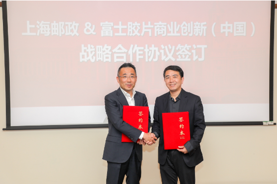 富士膠片商業(yè)創(chuàng)新(中國)董事長兼總裁中村達也(左)、中國郵政上海市分公司黨委委員/副總經(jīng)理徐永淼(右)
