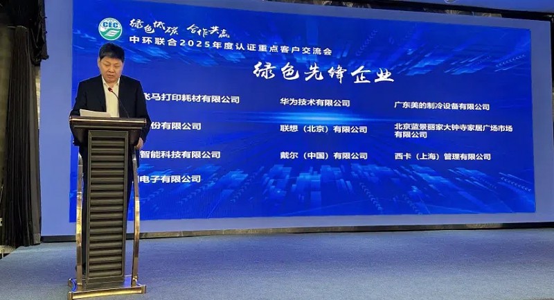 在大會頒獎環(huán)節(jié),生態(tài)環(huán)境部環(huán)境發(fā)展中心黨委書記、主任陳明向天威飛馬打印耗材有限公司授予“綠色先鋒企業(yè)”獎牌。該獎項聚焦企業(yè)在綠色技術(shù)、循環(huán)經(jīng)濟、生態(tài)效益等維度的綜合表現(xiàn),華為、美的、聯(lián)想、戴爾等全球知名企業(yè)同期上榜。
