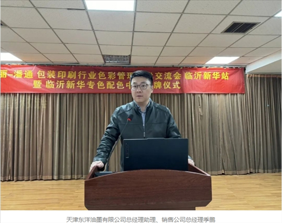 天津東洋油墨有限公司總經(jīng)理助理、銷售公司總經(jīng)理季鵬發(fā)表致辭,對合作伙伴臨沂新華的長期支持表示感謝。作為臨沂新華核心供應商,天津東洋現(xiàn)已為其8臺輪轉(zhuǎn)LED設備提供定制專供油墨解決方案。他對專色配色中心的成立表示熱烈祝賀,認為該中心的建立將繼續(xù)為臨沂新華添磚加瓦,以創(chuàng)新賦能印刷產(chǎn)業(yè)升級,為行業(yè)發(fā)展描繪濃墨重彩的新篇章。