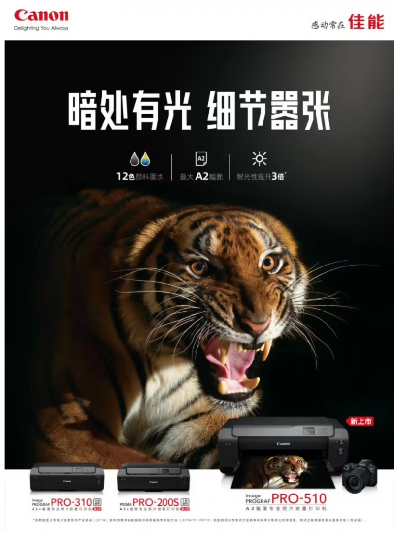 佳能近日推出全新一代PRO系列專業(yè)影像輸出解決方案,重磅發(fā)布三款針對(duì)不同場(chǎng)景的專業(yè)級(jí)打印機(jī):支持A2幅面輸出的imagePROGRAF PRO-510、A3+幅面機(jī)型PRO-310以及PIXMA PRO-200S。該系列以突破性技術(shù)創(chuàng)新直擊專業(yè)影像工作室、藝術(shù)收藏機(jī)構(gòu)和攝影創(chuàng)作者的三大核心需求——從商業(yè)影像輸出到藝術(shù)典藏制作,從高校教學(xué)到科研實(shí)驗(yàn),全方位構(gòu)建專業(yè)影像輸出新標(biāo)準(zhǔn)。