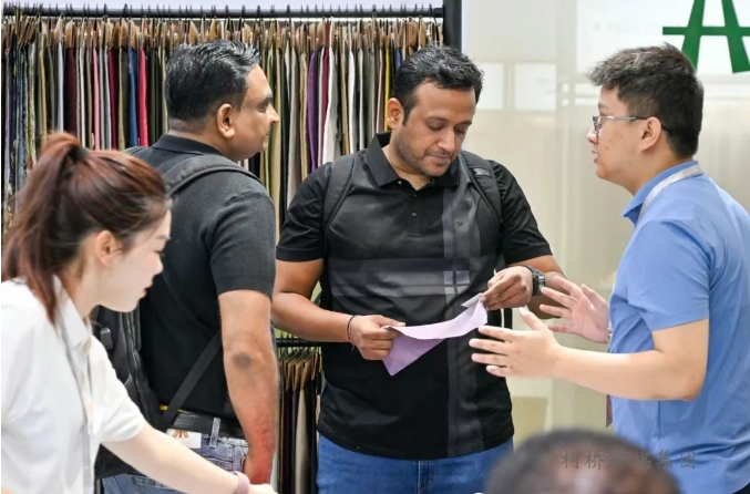 在柯橋觸摸“世界脈動(dòng)”俄羅斯、巴基斯坦、科威特、委內(nèi)瑞拉……在本屆柯橋國(guó)際紡博會(huì)的現(xiàn)場(chǎng),隨處可見(jiàn)來(lái)自世界各地的外國(guó)客商。在紹興璟亨紡織品有限公司展位,巴基斯坦外商大衛(wèi)找到了心儀的襯衫面料,為了尋找新的供應(yīng)商,這是他時(shí)隔5年再次來(lái)到紡博會(huì)現(xiàn)場(chǎng)。雙方約定,如果樣品能得到下游客戶認(rèn)可,一周后他將去“璟亨紡織”的工廠看看。