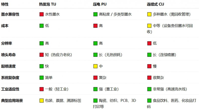 這三類技術(shù)在原理、性能、墨水系統(tǒng)、維護(hù)機(jī)制和應(yīng)用方向上均有明顯差異。