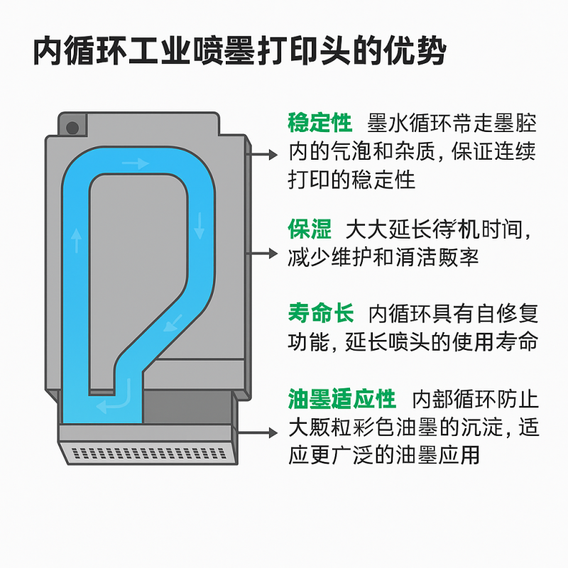內(nèi)循環(huán)工業(yè)噴墨打印頭的優(yōu)勢