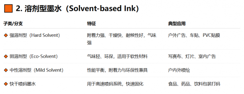 定義:使用有機溶劑為載體,附著力強,適合非吸收材質(zhì),如PVC、塑料,戶外應(yīng)用廣泛。