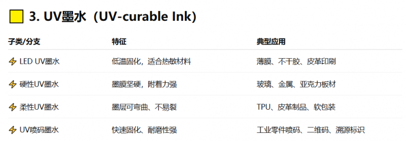 UV墨水以其清晰明亮的圖像而聞名,同時還具有耐熱、耐化學腐蝕和防水的特性。其適用范圍廣泛,包括熱敏材料。