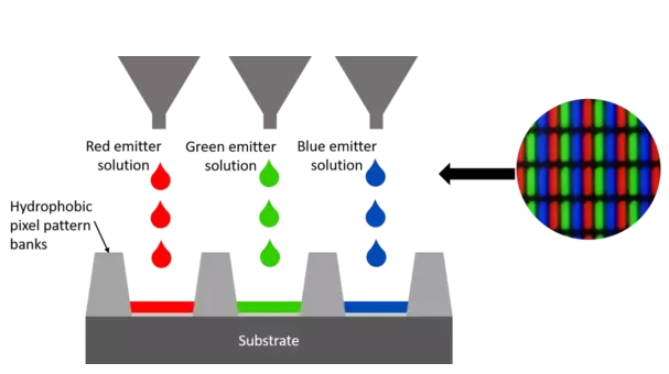 墨水配方與成膜控制:墨水需兼顧溶解性、揮發(fā)性和穩(wěn)定性,且干燥過程中需避免 “咖啡圈效應(yīng)”,否則會影響像素均勻性。