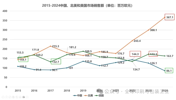 小森:依賴度相對(duì)最高,且表現(xiàn)出色。2024年的大中華區(qū)(包括中國內(nèi)地)營收占比高達(dá)17.27%,是三者中最高的。在大中華區(qū)市場不僅實(shí)現(xiàn)了4.7%的銷售額增長,更成功扭虧為盈,實(shí)現(xiàn)營業(yè)利潤新高。這表明小森在大中華區(qū)市場取得了顯著成功,其業(yè)務(wù)增長和盈利能力與大中華區(qū)市場表現(xiàn)高度相關(guān)。特別是在包裝印刷領(lǐng)域的強(qiáng)勁增長,有效彌補(bǔ)了商業(yè)印刷的疲軟,這與中國包裝市場近年來的持續(xù)繁榮密不可分。