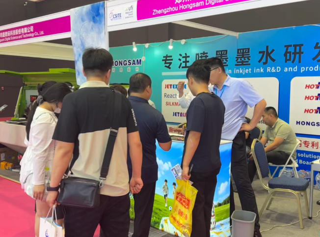 展會期間,鴻盛數(shù)碼憑借 24 年噴墨墨水研發(fā)經(jīng)驗及 19 項發(fā)明專利、68 個國內(nèi)外注冊商標的實力背書,吸引了眾多有關行業(yè)人士的關注。展會現(xiàn)場現(xiàn)場咨詢客戶眾多,彰顯了市場對其水性乳膠方案在汽車內(nèi)飾領域應用前景的高度認可。