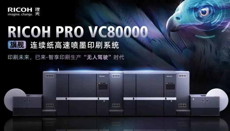 新一代連續(xù)紙高速噴墨印刷系統(tǒng)RICOH Pro VC80000高度集成人工智能并采用新一代理光噴頭技術,實現(xiàn)質量與自動化雙飛躍。RICOH Pro VC70000則以150米/分鐘極速輸出,杜絕紙皺的專利干燥技術,和鮮活呈現(xiàn)復雜圖案的特點,助力工廠高速生產。