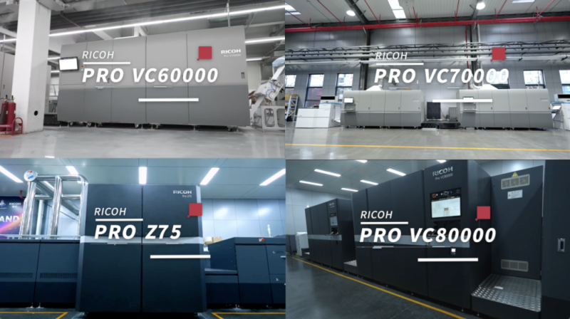 作為理光技術實力的最佳見證,印刷巨擘盛大印刷在三大廠區(qū)部署了六臺理光高端設備,構建起強大的印刷生產矩陣。在盛大印刷永城工廠,理光噴墨矩陣強勢集結,配備了RICOH Pro VC80000、RICOH Pro VC70000、RICOH Pro VC60000、RICOH Pro Z75各一臺,以澎湃動能定義印刷新高度。