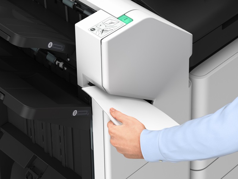 佳能imageFORCE贏系列數(shù)碼復(fù)合機(jī)可選配分頁裝訂處理器,實(shí)現(xiàn)各類裝訂任務(wù)