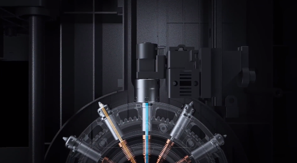 原子重塑以 FDM 打印機為切入,推出首創(chuàng)的輪盤式噴嘴庫設計,實現(xiàn)最高 36 色、12 種材料的精準打印,將突破點鎖定在 “材料與色彩的極致運用”。這種設計,將會大幅提升換色切換效率,減少耗材損耗。