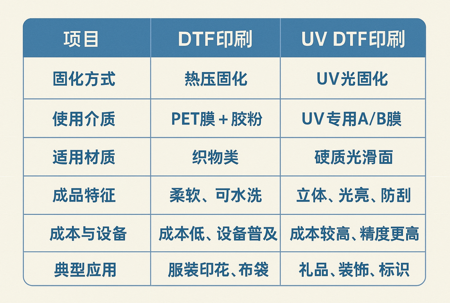 換言之,DTF屬于紡織印花領(lǐng)域的革新,而UV DTF更多服務(wù)于裝飾與工業(yè)標(biāo)識(shí)領(lǐng)域。