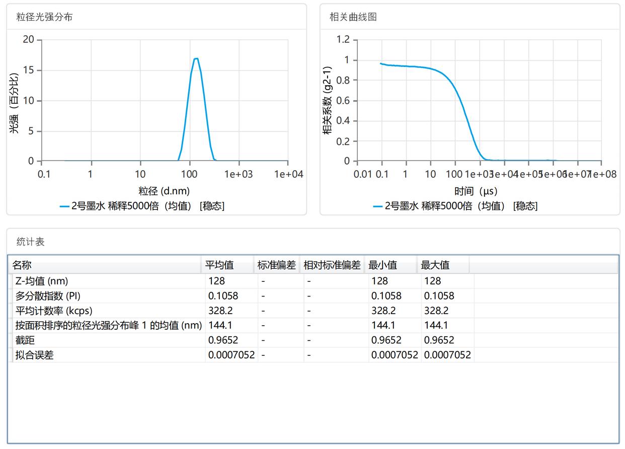 某水性墨水使用NS-90ZPlus納米粒度電位分析儀的粒度檢測報告