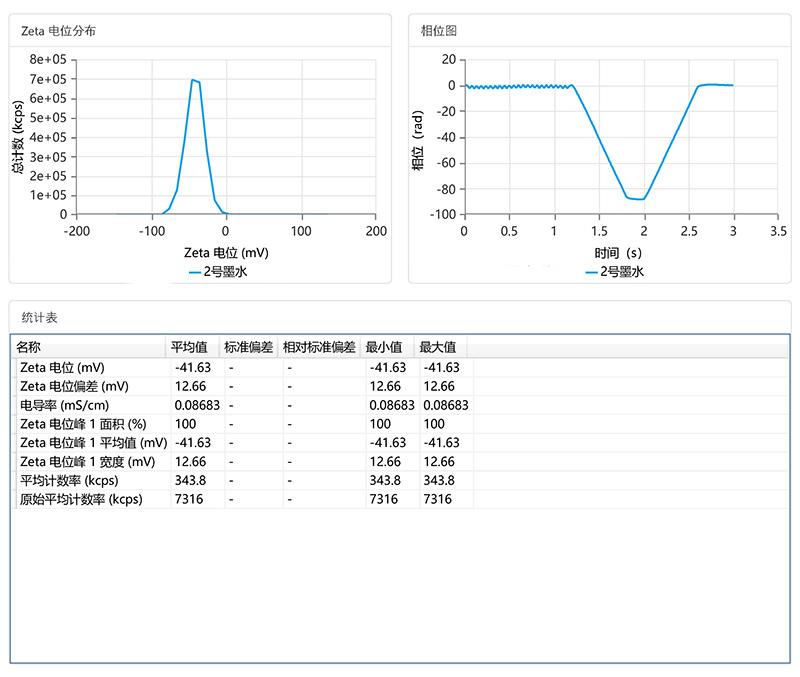 同款水性墨水樣品使用NS-90ZPlus納米粒度電位分析儀的Zeta電位檢測報告