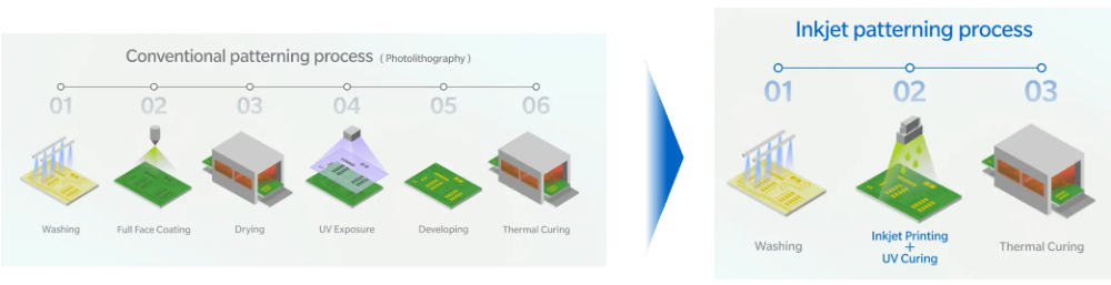印刷電路板的制造過程中,需要涂覆并形成阻焊層,這是一種用于保護(hù)電路的絕緣薄膜。雖然光刻技術(shù)被廣泛用于形成阻焊層圖案,但噴墨技術(shù)也常被采用。