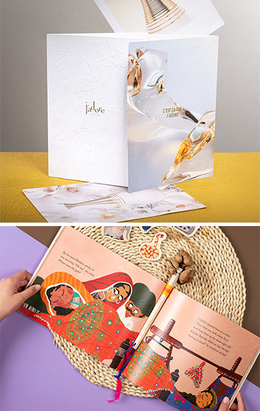 如今的消費(fèi)者更看重體驗(yàn)而非物質(zhì)。在美國,“體驗(yàn)消費(fèi)”已經(jīng)超過了“商品消費(fèi)”,印刷行業(yè)也正朝著強(qiáng)調(diào)印刷品的體驗(yàn)和情感價值的方向發(fā)展。個性化印刷賦予每位收件人一種專屬感,有助于提升品牌忠誠度。一項(xiàng)調(diào)查發(fā)現(xiàn),75%的消費(fèi)者愿意為個性化產(chǎn)品支付更多費(fèi)用,40%的消費(fèi)者表示愿意打開并評價定制商品*7。實(shí)體印刷品的體驗(yàn)價值也正在被重新評估,70%的美國成年人更喜歡實(shí)體賀卡而非電子郵件,能夠調(diào)動五感的印刷品正吸引著人們的目光。印刷品的特殊加工和開箱體驗(yàn)等,如今已成為用戶體驗(yàn)設(shè)計的一部分。