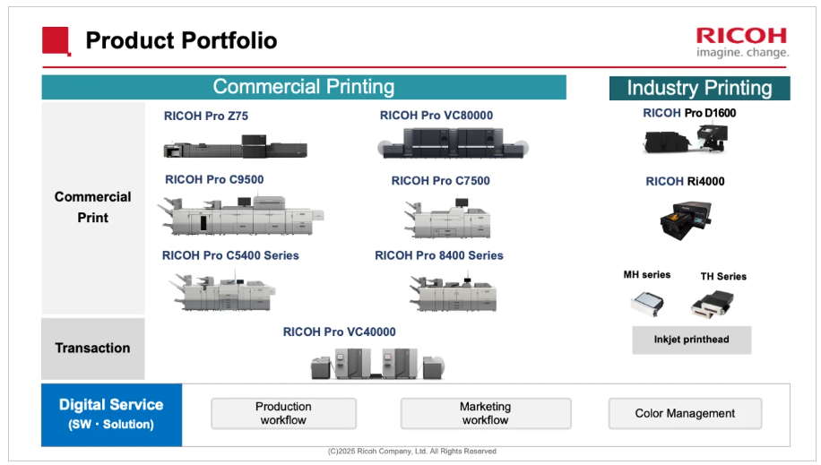 理光正利用高速噴墨技術,將其商業(yè)印刷業(yè)務從小批量生產(chǎn)拓展至中大批量市場。技術進步顯著提升了生產(chǎn)效率、圖像質量、穩(wěn)定性以及成本效益,使數(shù)字印刷即使在傳統(tǒng)上由膠印主導的領域也成為一種可行的替代方案。