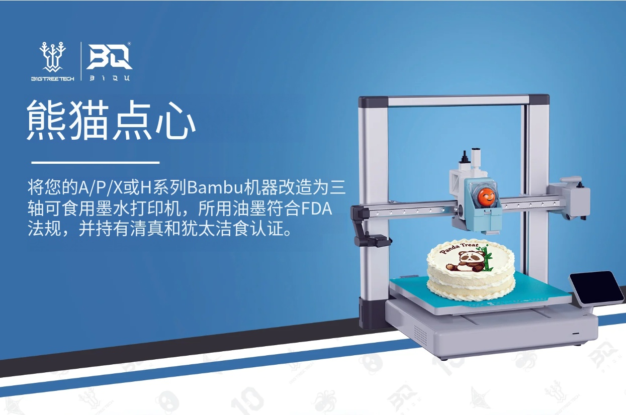了解BIQU的人都知道,該品牌近年來在創(chuàng)新領域持續(xù)發(fā)力。盡管其自主研發(fā)的3D打印機未能掀起太大波瀾,但推出的各類配件卻憑借新奇的創(chuàng)意和實用的性能圈粉無數(shù),尤其是適配Bambu Lab打印機的系列配件,更是備受市場關(guān)注。而這款熊貓美食食品打印噴墨附件,無疑是BIQU配件家族的又一重磅力作。