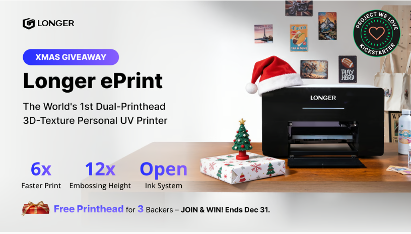 當(dāng)工業(yè)級(jí)打印能力被壓縮進(jìn)桌面級(jí)設(shè)備,一場(chǎng)關(guān)于創(chuàng)作與生產(chǎn)的效率革命已然來(lái)臨。2025年11月25日,LONGER品牌推出的全球首款UV+DTF雙工藝桌面級(jí)一體機(jī)ePrint在Kickstarter平臺(tái)正式上線,瞬間引爆眾籌市場(chǎng)——60秒內(nèi)達(dá)成5萬(wàn)美元籌款目標(biāo),45分鐘突破100萬(wàn)美元大關(guān),截至目前已斬獲421萬(wàn)美元眾籌金額,登頂平臺(tái)籌款金額榜首,成為現(xiàn)象級(jí)創(chuàng)業(yè)項(xiàng)目。這款產(chǎn)品的橫空出世,不僅讓LONGER成為首個(gè)實(shí)現(xiàn)UV與DTF技術(shù)桌面原生集成的品牌,更徹底打破了傳統(tǒng)桌面打印的材料與場(chǎng)景限制,為個(gè)人創(chuàng)作者、小型工作室乃至商業(yè)生產(chǎn)帶來(lái)了顛覆性可能。