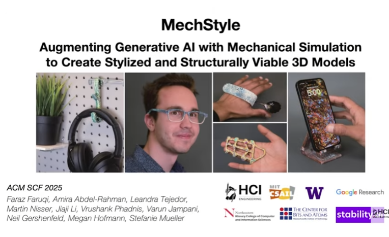 Faruqi與谷歌、Stability AI和東北大學的研究人員合作,共同開發(fā)了MechStyle,這是一個人工智能系統(tǒng),能夠生成既具有視覺表現(xiàn)力又結構穩(wěn)固的物體。用戶可以上傳或選擇一個3D模型(例如花瓶或壁鉤),然后通過文字或圖像提示來引導其變形。生成模型會修改幾何形狀,而MechStyle則會持續(xù)模擬這些變化對物體物理性能的影響,以保護脆弱區(qū)域。用戶滿意后,即可通過3D打印技術制作該物體。