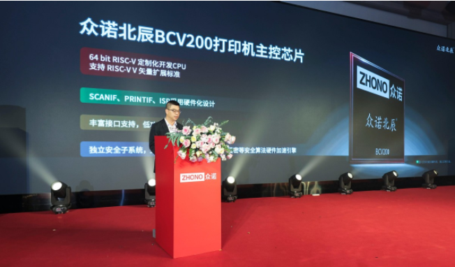 作為本次發(fā)布會(huì)的核心亮點(diǎn),眾諾北辰BCV200打印機(jī)主控芯片專為激光、噴墨等各類打印機(jī)量身打造,是支撐打印機(jī)實(shí)現(xiàn)多元功能的核心主控SOC芯片,可全面滿足打印、掃描、復(fù)印等多種主流打印機(jī)應(yīng)用需求,填補(bǔ)了國(guó)產(chǎn)RISC-V架構(gòu)打印機(jī)主控芯片的市場(chǎng)空白。據(jù)廣州眾諾微電子有限公司SOC事業(yè)群副總裁、北辰芯片總工程師伍星先生介紹,當(dāng)前中國(guó)打印機(jī)產(chǎn)業(yè)要實(shí)現(xiàn)做強(qiáng)做優(yōu),亟需突破功能快速迭代、運(yùn)行穩(wěn)定可靠、國(guó)產(chǎn)化安全更有保障三大瓶頸,而北辰BCV200芯片的推出,正是為破解這些瓶頸、夯實(shí)產(chǎn)業(yè)發(fā)展基礎(chǔ)而生。