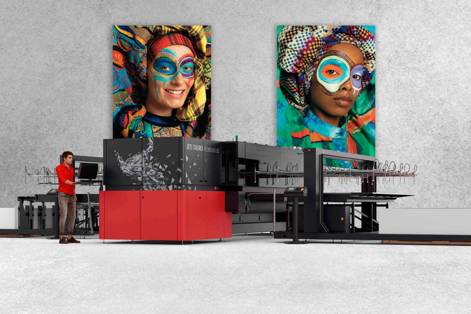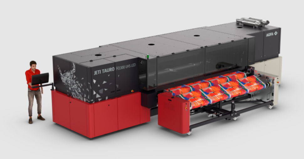 作為愛(ài)克發(fā)旗艦產(chǎn)品系列,Jeti Tauro系列的明星機(jī)型Jeti Tauro H3300 UHS也將同步亮相。該設(shè)備專(zhuān)為連續(xù)、大批量輸出設(shè)計(jì),配備先進(jìn)的自動(dòng)化選項(xiàng),是大型印刷服務(wù)提供商的理想解決方案。其最高打印速度可達(dá)905平方米/小時(shí),擁有8排打印頭,支持多種色彩配置,可根據(jù)需求選擇CMYK基礎(chǔ)色或增強(qiáng)暗色調(diào)的CCMYKKcK配置,還可可選白墨、底漆與光油,進(jìn)一步提升打印質(zhì)感與表現(xiàn)力。憑借板卷一體的設(shè)計(jì),Jeti Tauro H3300 UHS可靈活處理剛性與柔性介質(zhì),廣泛應(yīng)用于橫幅、海報(bào)、標(biāo)識(shí)、展覽圖形、包裝等多種場(chǎng)景,其堅(jiān)固耐用的結(jié)構(gòu)的與動(dòng)態(tài)擴(kuò)展真空區(qū),尤其適合紙板印刷,搭配MAX上料機(jī)與堆垛機(jī),可實(shí)現(xiàn)生產(chǎn)效率的最大化,被行業(yè)內(nèi)親切稱(chēng)為“性能猛獸”。