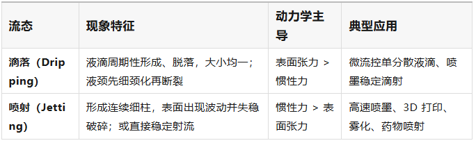 該公式無(wú)需復(fù)雜數(shù)值計(jì)算,可直接用于工程中不同噴嘴、不同流動(dòng)參數(shù)下射流流態(tài)的精準(zhǔn)預(yù)測(cè),為噴墨打印、藥物微球制備、燃料霧化等工藝的參數(shù)優(yōu)化提供了定量指引。